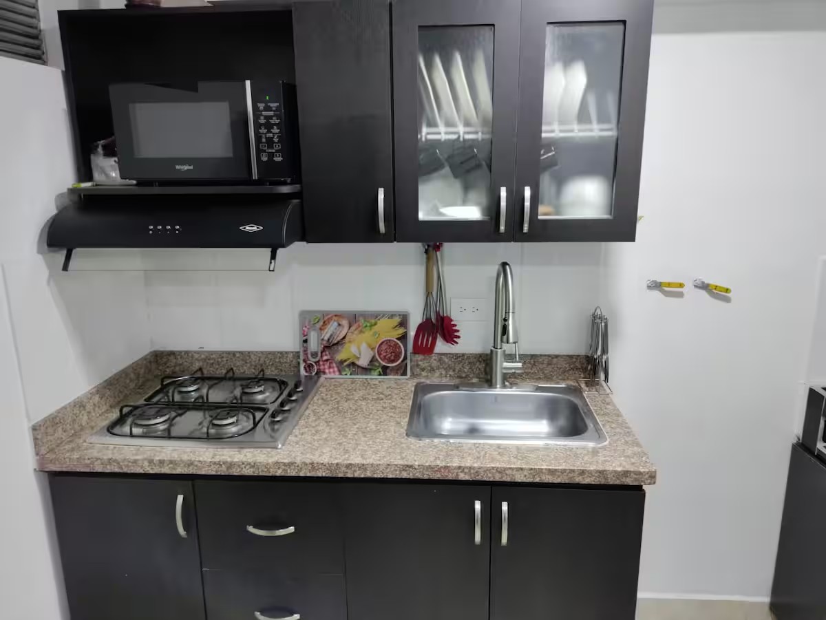 A mid-range private apartment built for the traveler who wants comfort without the El Poblado price tag. Located steps from Olaya Herrera Airport and the authentic heart of Medellín — fiber WiFi, a real workspace, and a host who actually picks up.